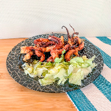 pulpo a la plancha marinado con soja y patqatas cocidas